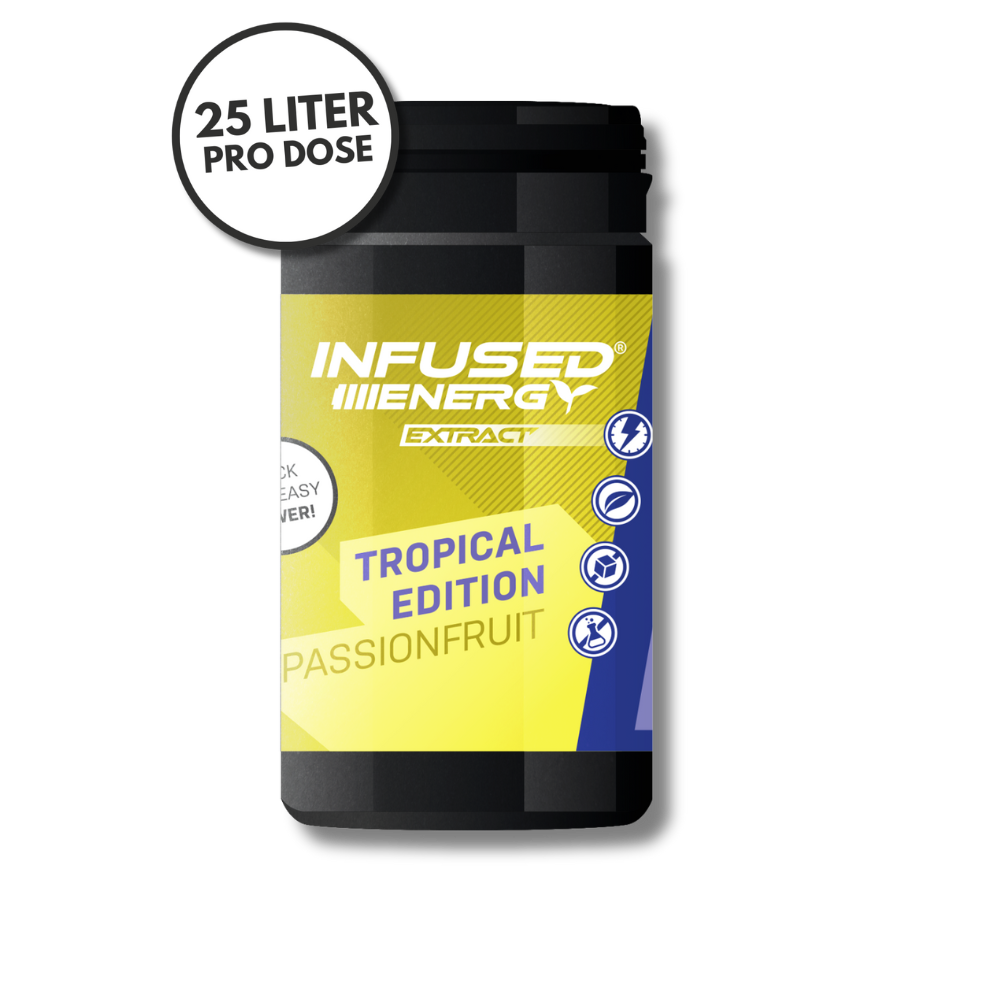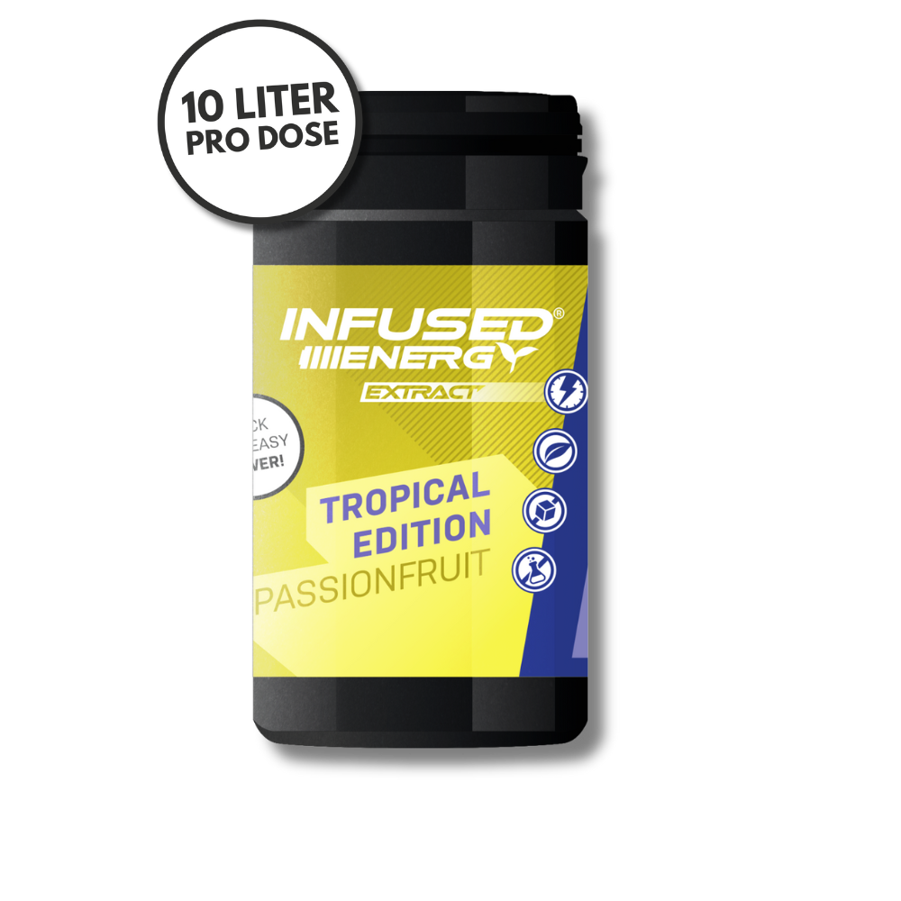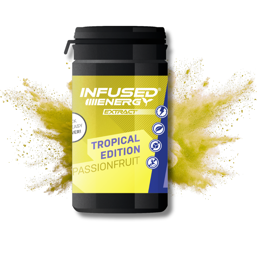 Discover the new Infused energy® Tropical extract – exotic passion fruit meets invigorating plant power, now as a pure plant extract. Simply mix with water and enjoy immediately!