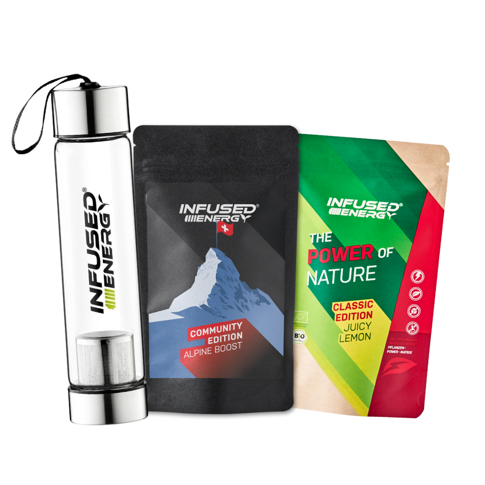 Im Schwiiz Starter Päckli stecken die zwei Sorten, die in der Schweiz am beliebtesten sind - zusammen mit der ikonischen Classic Infuser Bottle - für die perfekte Zubereitung.